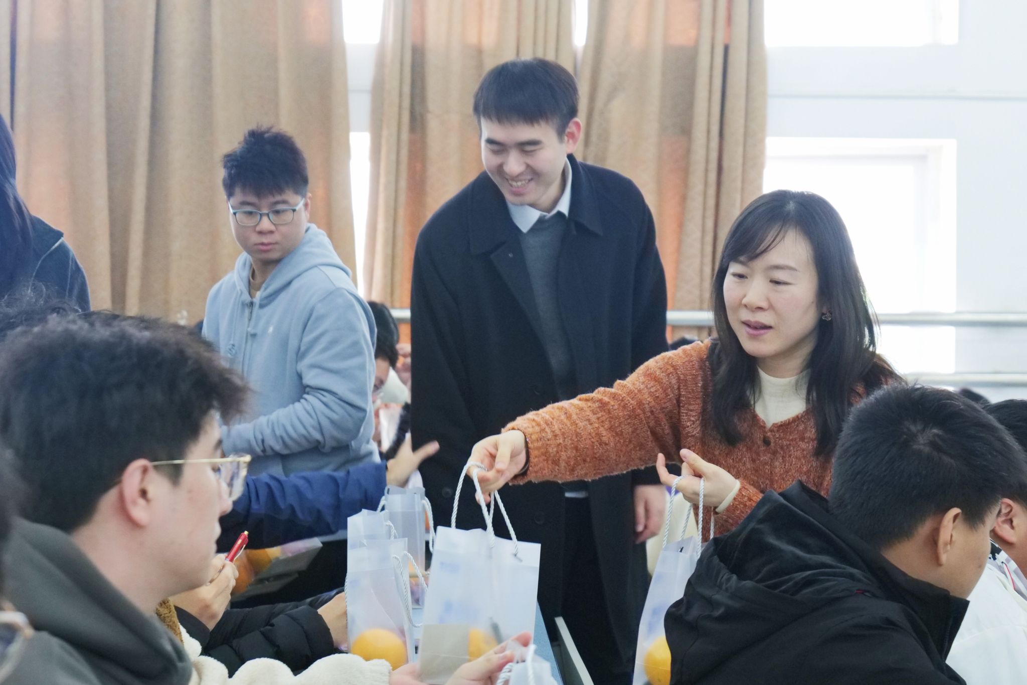 夏夏、文扬东、梅洁代表学院对投身考研冲刺的同学们表达了诚挚关心与殷切问候。老师们亲手为同学们送上定制大礼包,每一份礼物都代表学院对同学们金榜题名的满心期待与真挚祝福。