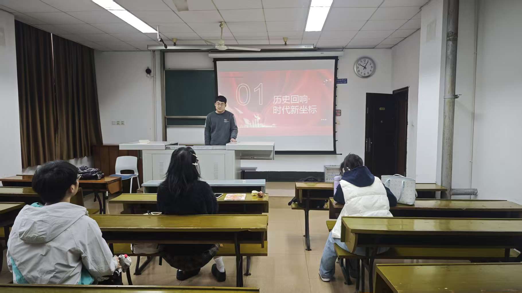 11月6日上午,党支部在J4320教室组织专题学习会。党支部书记刘冠男同志带领全体党员集体学习习近平总书记在纪念中国人民抗日战争暨世界反法西斯战争胜利80周年大会上的重要讲话,深入研读《论中国共产党历史》相关章节及2025年红色文化传承最新文件精神,进一步明晰抗战精神的时代意义。