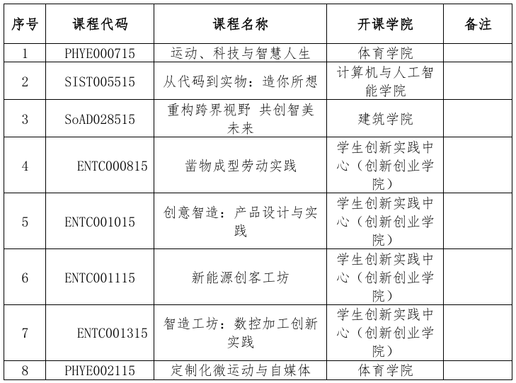 通识教育课程设置4学分,可以在“通识课程Ⅰ(个人修养)”“通识课程Ⅱ(美育)”“通识课程Ⅲ(劳育)”“通识课程Ⅳ(创新创业)”中任选两个门类,在门类限定的课程中任选一个2学分的课程。