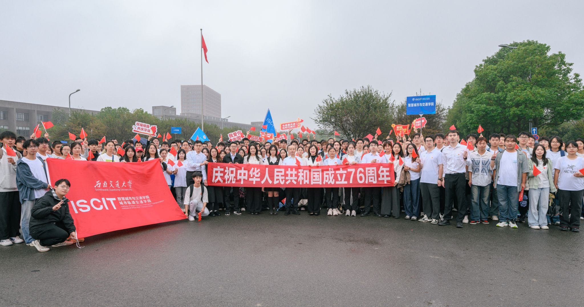 金秋送爽,硕果盈枝,为热烈庆祝新中国成立73周年,深入学习贯彻习近平总书记在庆祝中国共产主义青年团成立100周年大会上的重要讲话精神和学校第十五次党代会精神, 10月1日上午,学院五百余名师生在犀浦校区东门国旗台下参加学校“喜迎二十大、永远跟党走、奋进新征程”庆祝新...